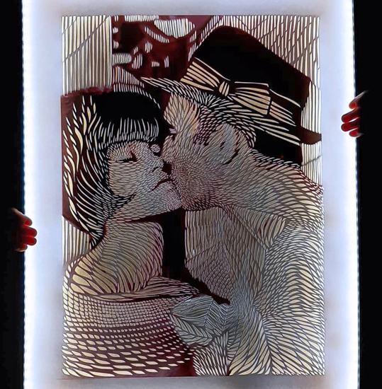 Scherenschnitt auf s/w, Lichtbox 60 x 80 cm