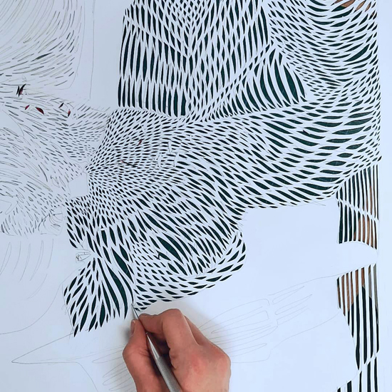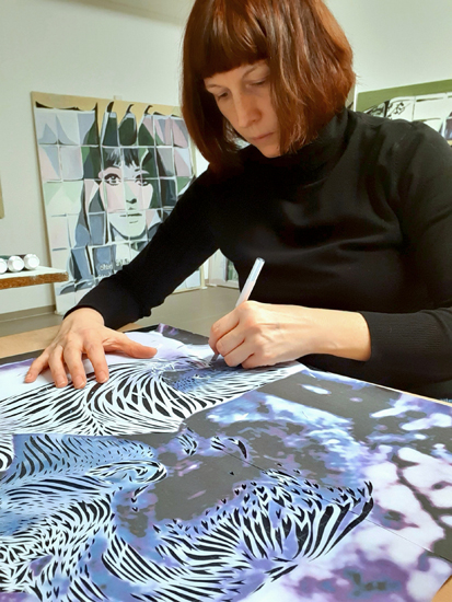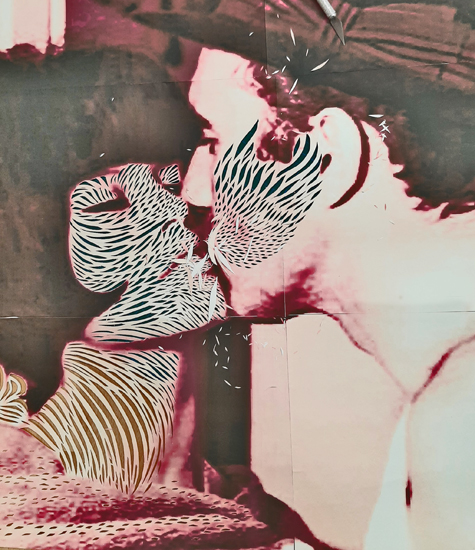 Scherenschnitt auf Farbkopie, skizze, 60 x 70 cm
