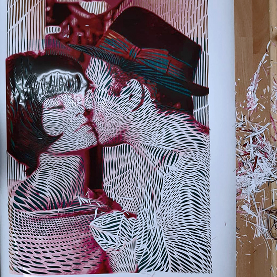 Scherenschnitt auf Farbkopie, skizze